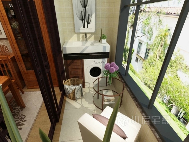餐廳后面有陽臺,買菜回來的時候坐在這里摘菜,望望窗外,洗衣機也在這,很方便耶