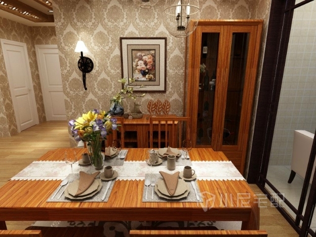餐廳空間雖小卻很溫馨,古典元素的裝飾在整體效果圖上顯現(xiàn)著古典之美。