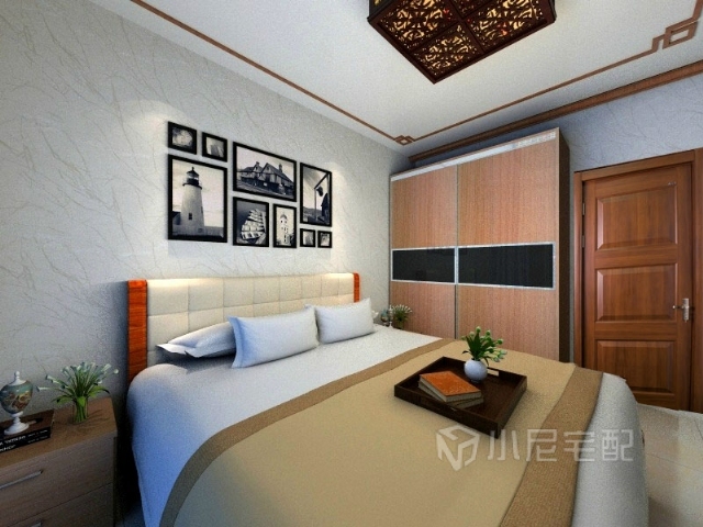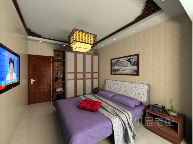 次臥室也是簡介明朗啦。。。沒有用過多的中式裝修元素  一個中式吊頂也就足夠了 ,臥室還是舒服些好 。。