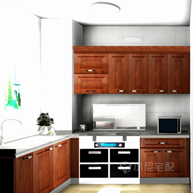 具有東方韻味的櫥柜,配上無煙集成灶,讓您在廚房盡情享受!
