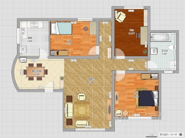 101㎡#三室兩廳一衛(wèi)#現(xiàn)代