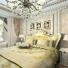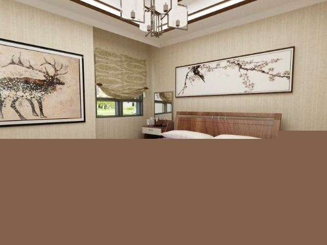 印花墻紙與吊燈燈籠相呼應,穩(wěn)重的實木與優(yōu)雅柔和的墻紙,貫通古典元素,色彩上或濃艷或淡雅,均衡與平穩(wěn)間,構建出一種和諧而舒適的美。