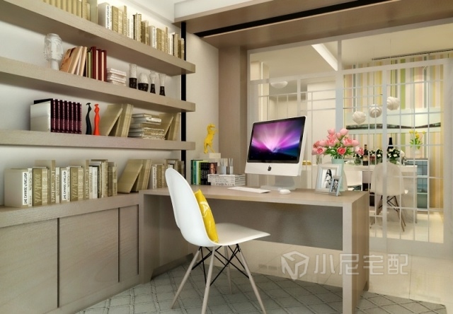以玻璃介質作為間隔,增加了書房的通透性。