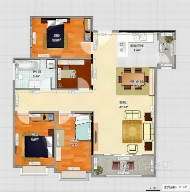 雖然面積不大,但是功能齊全、充分預留了兒童的活動空間。