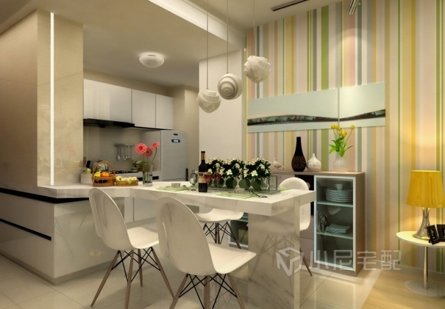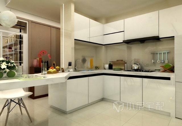 櫥柜延展出吧臺式餐桌,時尚簡約。