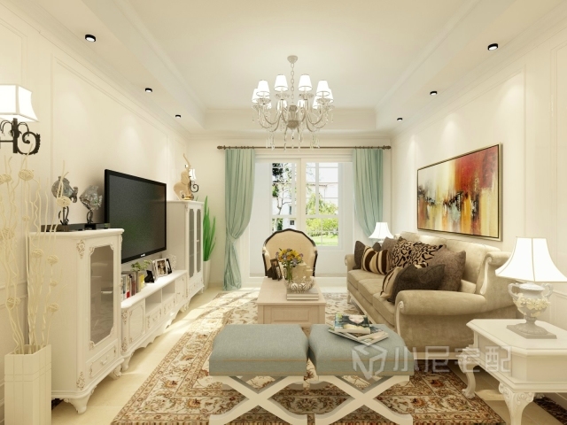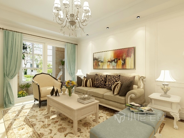 美式的地毯,剔透的吊燈,整個(gè)空間顯得干凈又自然。