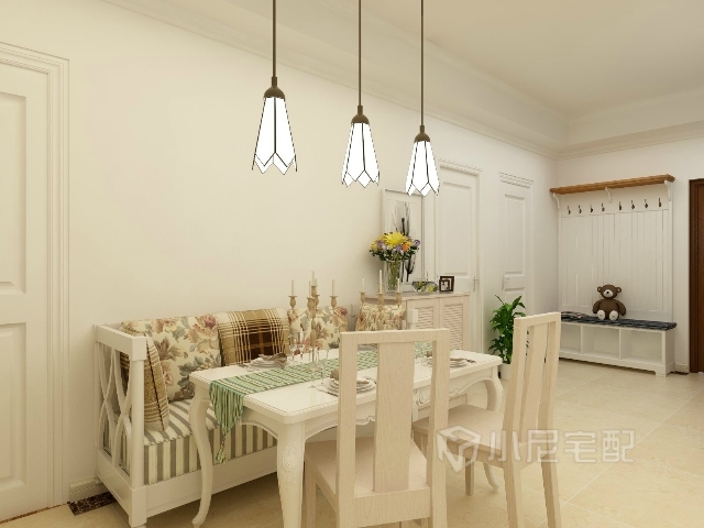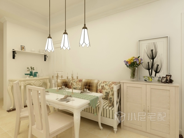 將鳶尾花一般的逸靜恬淡運(yùn)用到空間的裝飾中,創(chuàng)造優(yōu)美自然,簡(jiǎn)潔大方的田園風(fēng)格,顯得整個(gè)空間明亮清爽,溫馨浪漫。