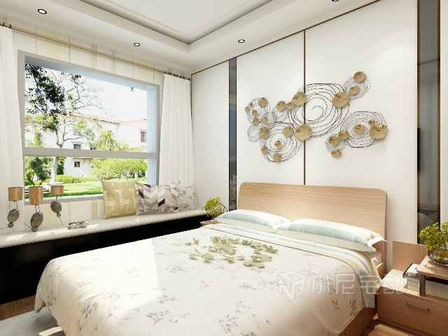 飄窗柜的設計增加了臥室的儲物功能,加上軟墊和抱枕,閑暇時坐在窗前也是一種享受。