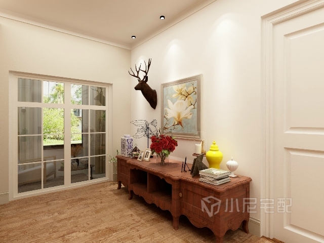 走廊的盡頭放一張歐式風格的桌子,擺放一些小飾品,增加了空間的利用和美感。