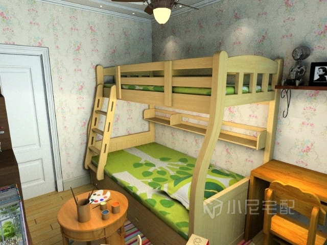 對于兒童房的布置,無論是在燈光上還是材質(zhì)上,盡量避免了刺激性色彩,而且在細(xì)節(jié)的處理上多采用以弧形