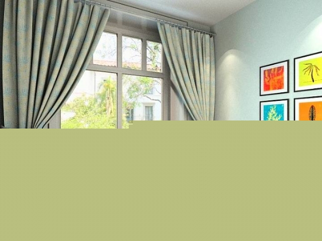 窗簾、床罩用印花布。一些綠色植物的襯托,使居室充滿愜意、輕松氣氛。