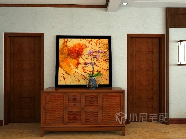 入戶門對(duì)著的墻放了一個(gè)角柜,上面一幅畫(huà),很有感覺(jué)