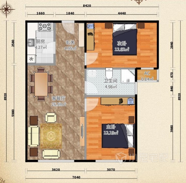 臥室以暖色調為主,暖暖的燈光,好想有個家