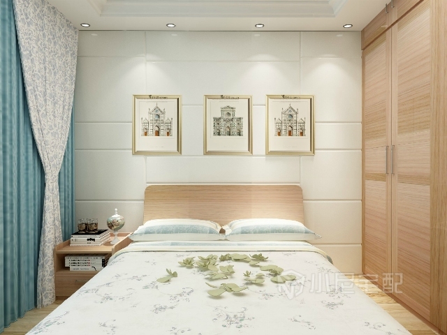 大大的衣柜增加了臥室的儲物功能,造型新穎時尚,簡潔大方。