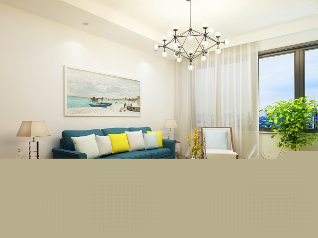 一個(gè)敦敦實(shí)實(shí)的布藝沙發(fā),讓人感覺自然而清新。簡潔的裝飾顯得空間開闊明亮。