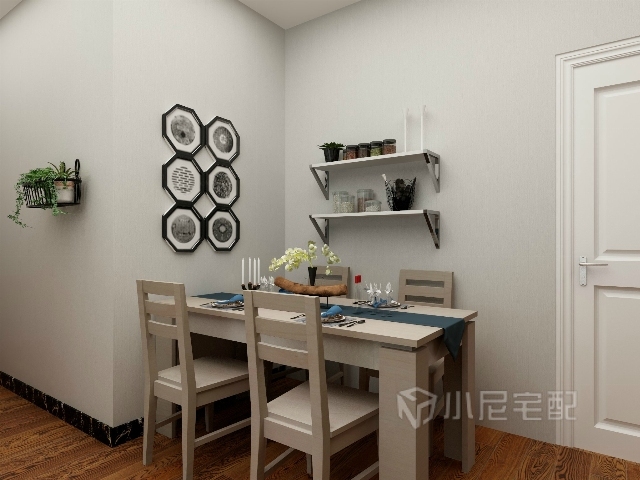餐廳空間較小,僅用壁架和裝飾畫豐富小空間。