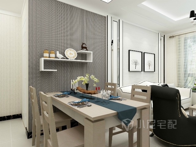 餐廳的布置十分簡潔,個性的壁紙?jiān)黾訒r尚感。