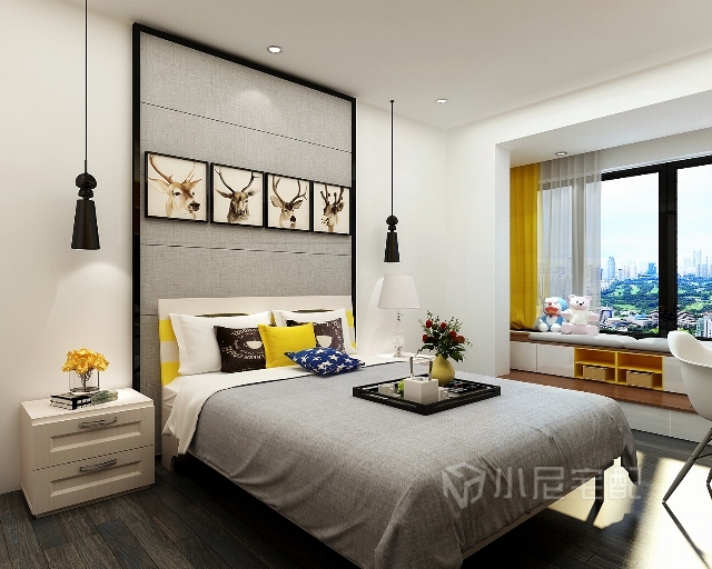 飄窗柜的設(shè)計(jì)不僅增加儲(chǔ)物空間,搭配上軟墊又可以坐在上面看書看風(fēng)景。用布質(zhì)的柔感,使整個(gè)空間營造溫暖舒適的氛圍。