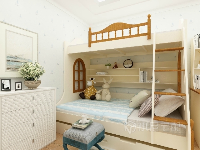 造型可愛的上下床,淡雅的裝飾環(huán)境,給孩子自由自在充滿幻想的小空間。