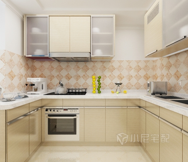 寬敞的廚房,U型的櫥柜組合,人性化的設(shè)計(jì),易于操作。
