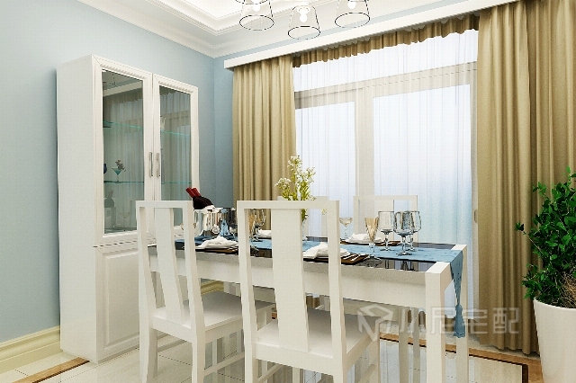 淡藍(lán)色的墻紙,珠光白色的家具,就像海水里的珍珠一般吸引人。
