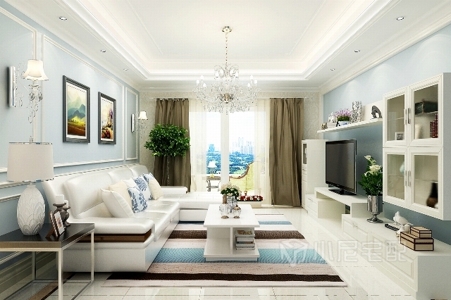 簡(jiǎn)潔的石膏線造型,白色皮質(zhì)沙發(fā),不同的材質(zhì)帶來(lái)不同的質(zhì)感體驗(yàn)。