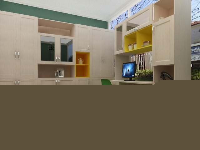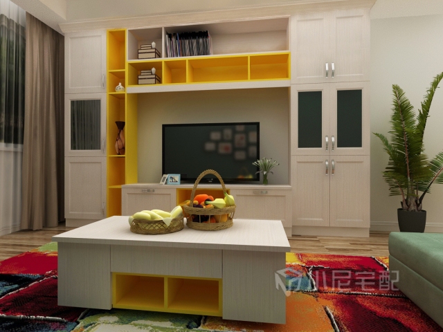色彩明亮的定制家具,利用明黃色為套色,充分利用空間,增加了儲物功能