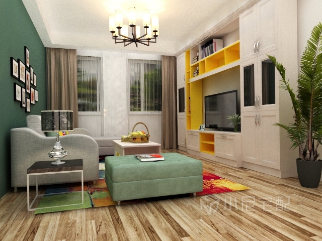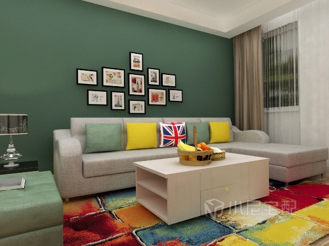 單面墻滾涂綠色,既提升了客廳的層次感,又添加了一抹生機