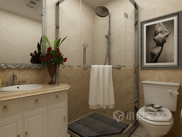 衛(wèi)生間上墻下墻腰線劃分了空間的層次