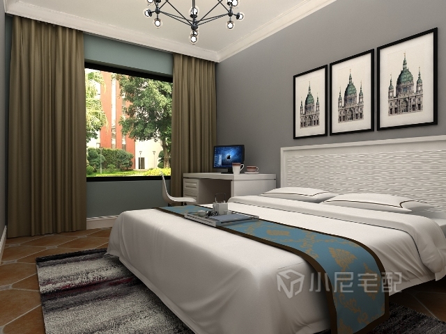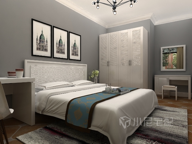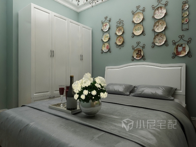 次臥采用田園花式掛架,有一些混搭的感覺(jué)