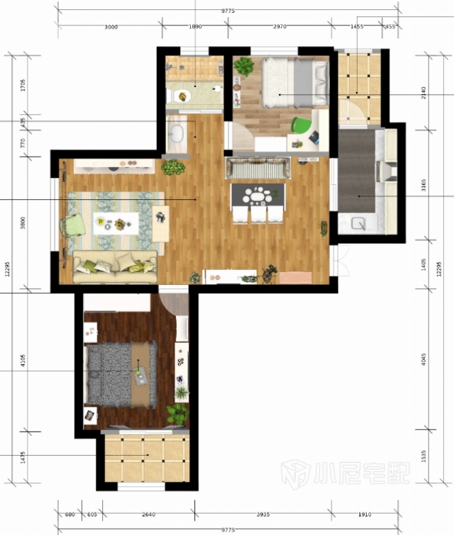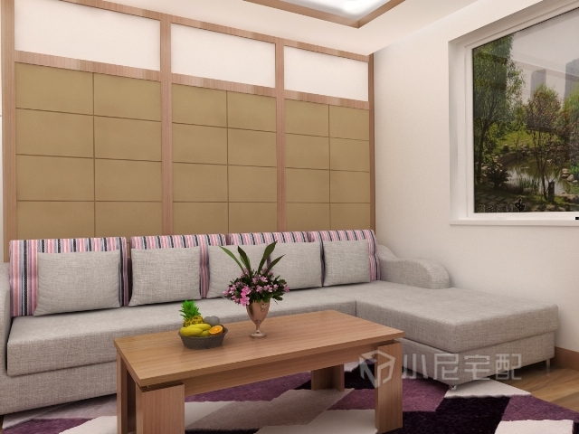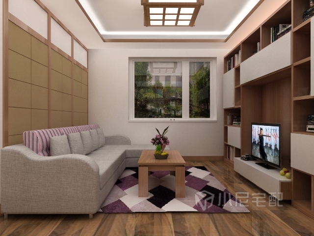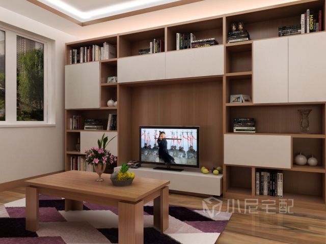 客廳裝飾很簡(jiǎn)單,用木色與白色搭配