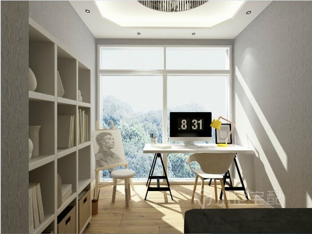 書房我是以簡單的書桌和書柜、空間開敞、內(nèi)外通透,在空間平面設計中追求不受承重墻限制的自由。