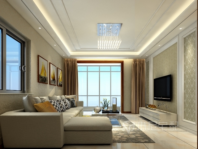 電視墻利用簡(jiǎn)單的線條形式 ,簡(jiǎn)潔大方
