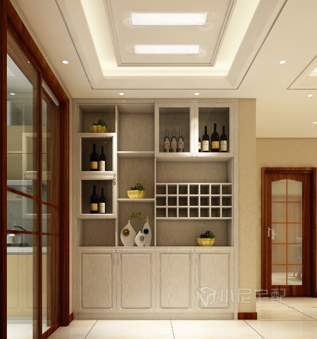 酒柜的設(shè)計(jì)和鞋柜相結(jié)合,是整個(gè)成為一個(gè)整體。