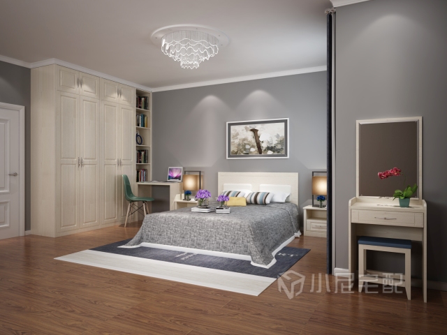 柔軟舒適的大床,多功能的衣柜,簡易的書桌,梳妝臺,一應(yīng)俱全