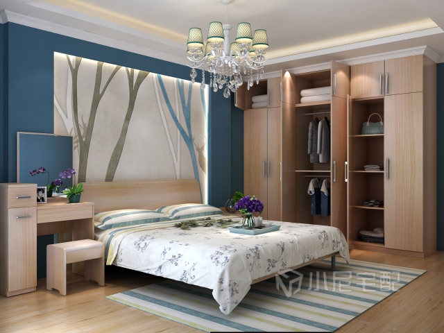 臥室的布置簡約又溫馨,大大的衣柜輕松解決儲物問題