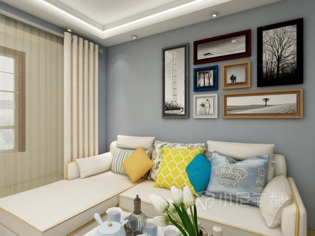 客廳空間的顏色比較偏清新藍(lán),干凈敞亮。