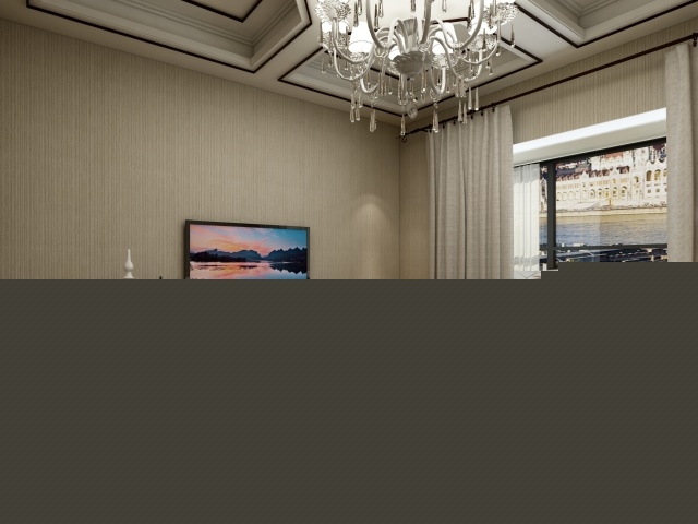 客廳以簡(jiǎn)歐家具為主,簡(jiǎn)單裝修。倆付油畫。明亮的窗戶。讓客廳更有自由風(fēng)的元素。
