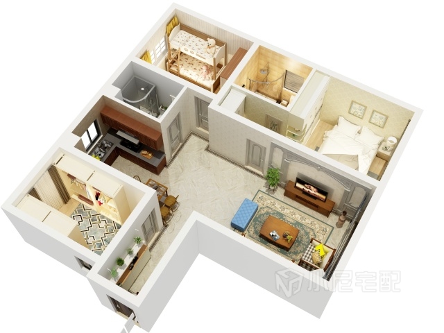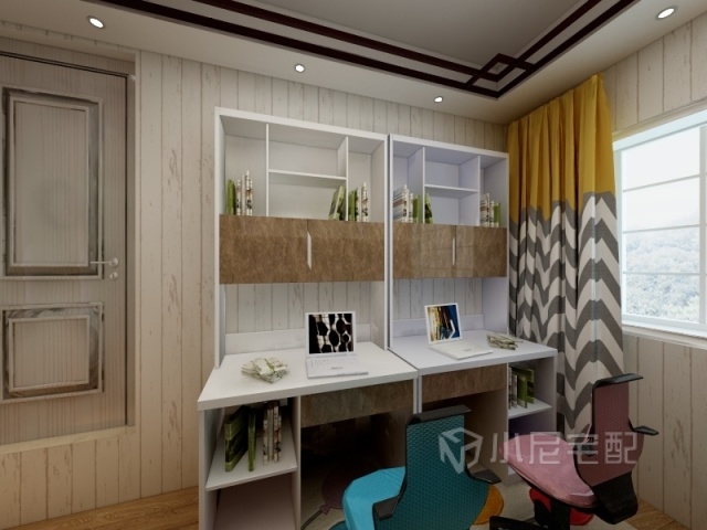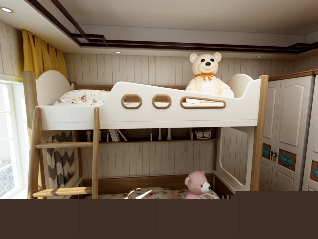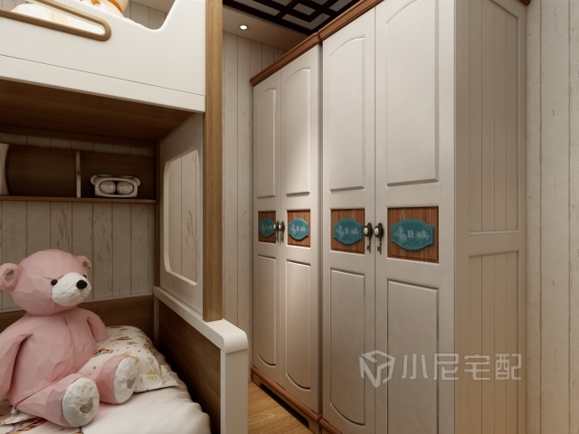 倆個女兒還不愿意分房睡  所有字臺 衣柜都是雙的,床是她們選的上下床。