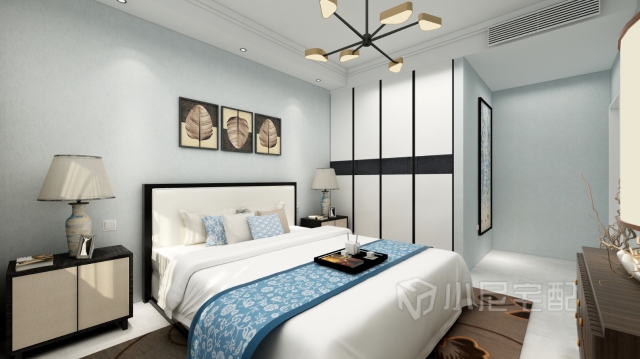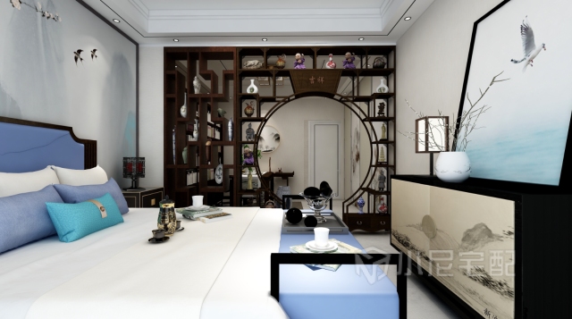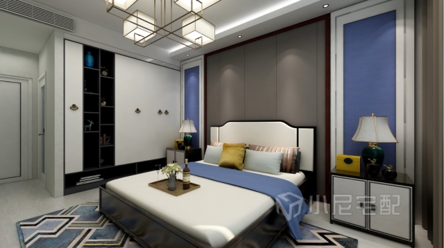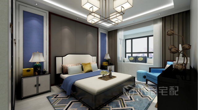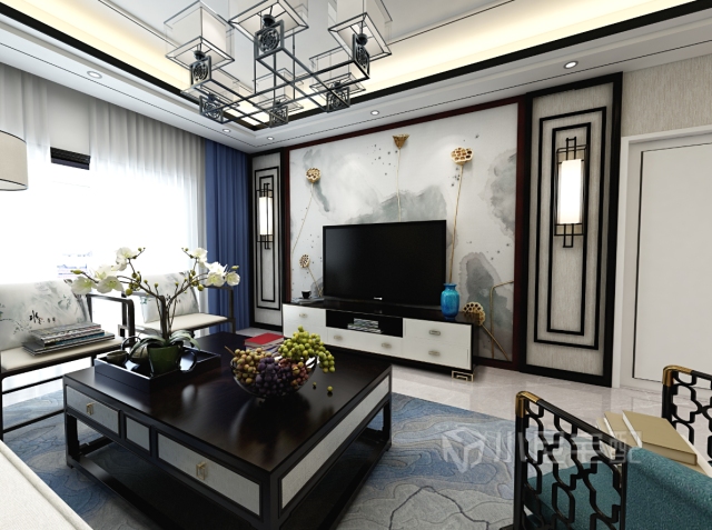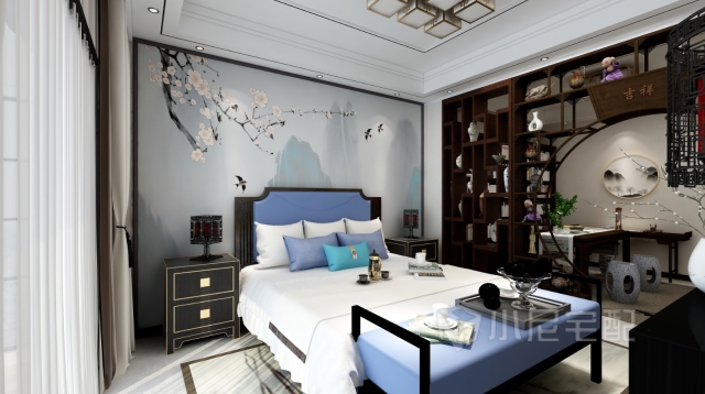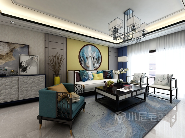 新中式風(fēng)格,大氣沉穩(wěn)。運(yùn)用充分的色彩調(diào)節(jié)整個(gè)屋子的亮點(diǎn)