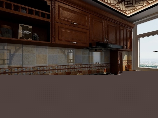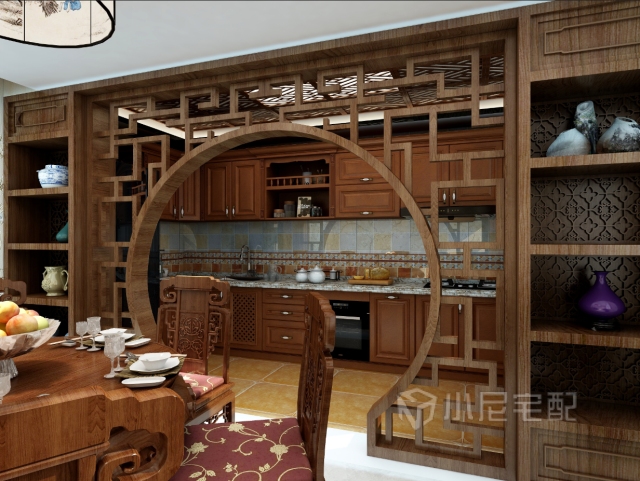 廚房比較大容納更多的電器,中式吊頂提供更高的生活品味。