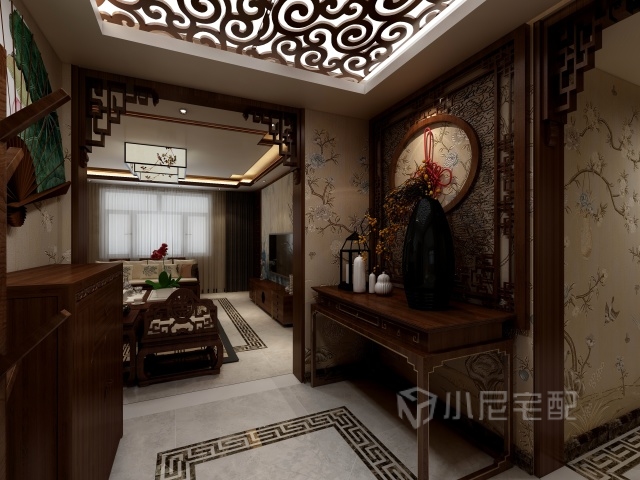 中式玄關(guān)添加中式元素,步入空間即刻感受到濃濃的中式氣氛