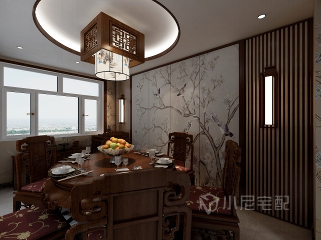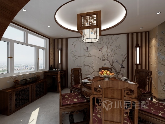 空間足夠大,使用了圓餐桌能容納更多客人進(jìn)餐