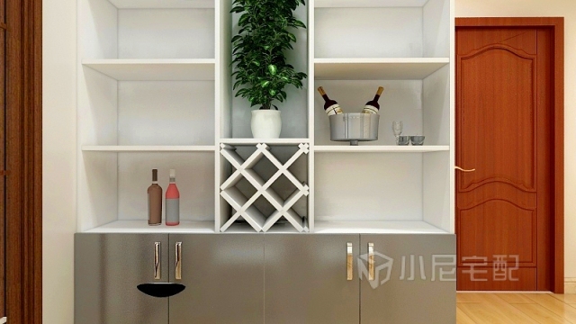 整個(gè)空間以白色為主,黑灰為輔,色調(diào)偏暖。鞋柜,酒柜,衣柜主白色,猝不及防跳出深色。明暗隨意,率性而為??!