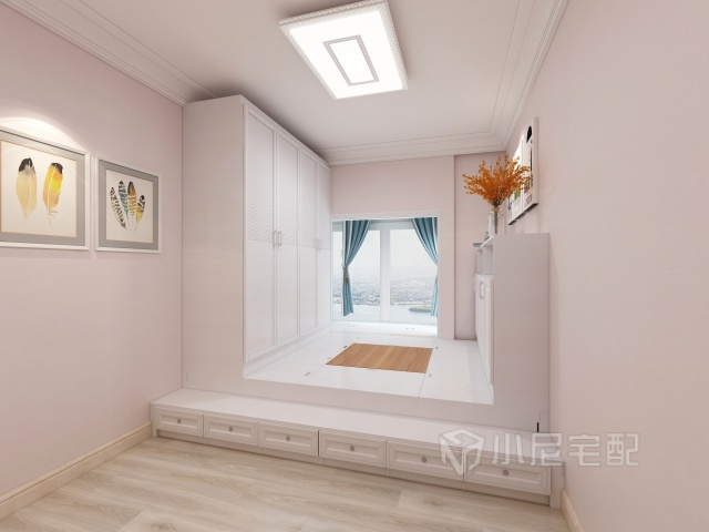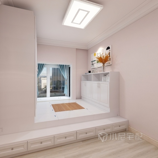 次臥榻榻米連著陽臺。衣柜,書柜,升降機(jī),收納空間充足,同時(shí)也是休閑喝茶的好地。