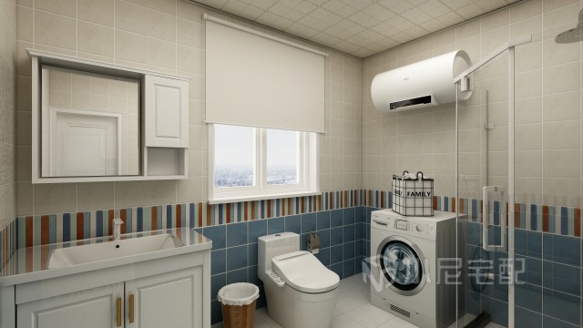 衛(wèi)生間設(shè)計淋浴房,干濕分離告別傳統(tǒng)“水漫金山",藍色與米黃的復古磚結(jié)合,色調(diào)宜人的,讓人居于其中,有一種精神的享受。