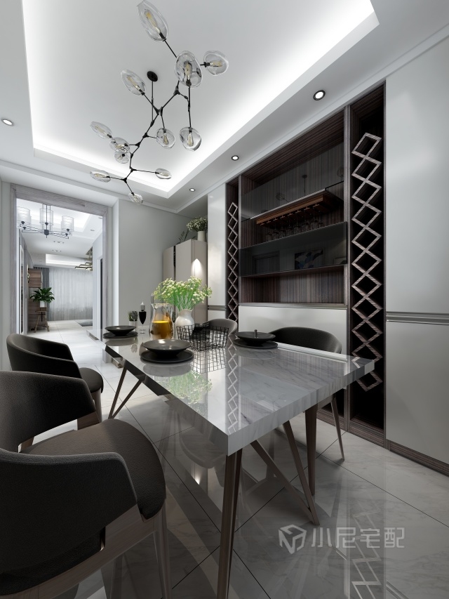時尚簡潔,空間以實用為主,美觀為輔,開闊明朗,體現(xiàn)高品質(zhì)的家居環(huán)境即可。 案例說明:簡約不等于簡單,它是設(shè)計師深思熟慮后經(jīng)過創(chuàng)新得出的設(shè)計和思路的延展,不是簡單的“堆砌”和平淡的“擺放”,在本案設(shè)計中設(shè)計師把原有的廚房和客廳相融合使客廳整體空間變得更大使用起來更舒適。在家具配置上,白亮光系列家具,獨特的光澤使家具倍感時尚,具有舒適與美觀并存的享受。在配飾上,延續(xù)了黑白灰的主色調(diào),以簡潔的造型、完美的細(xì)節(jié),營造出時尚前衛(wèi)的感覺。