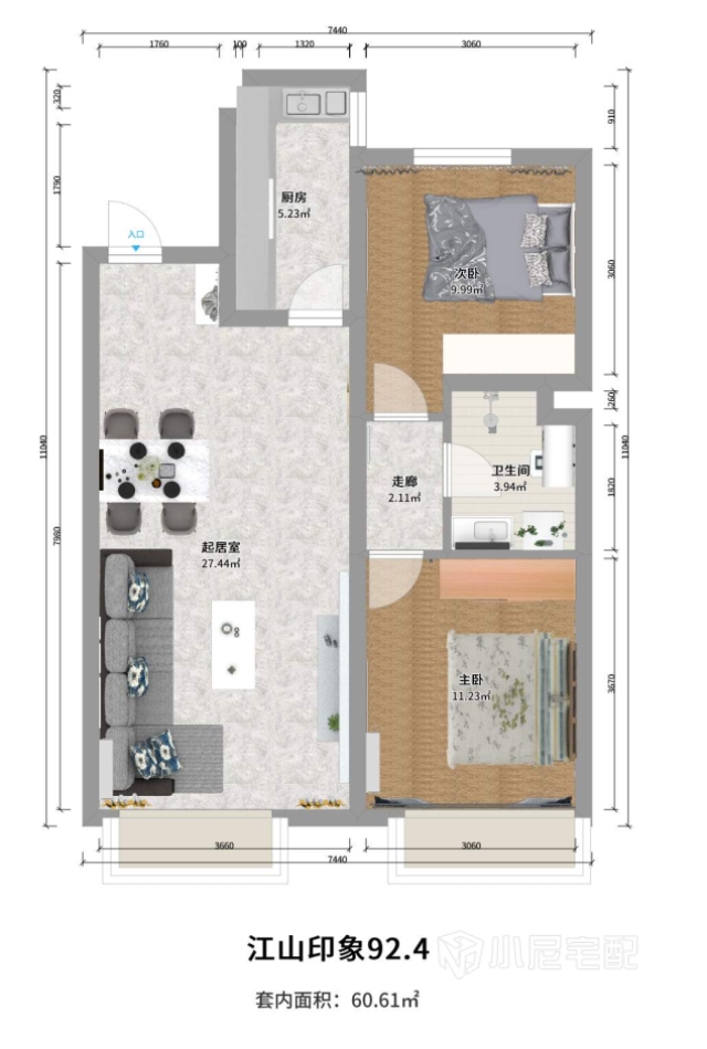 60.61㎡#兩室一廳一衛(wèi)#現(xiàn)代
