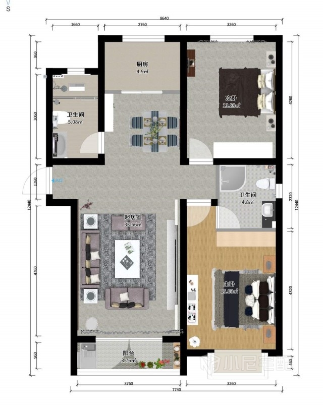 96㎡#兩室一廳兩衛(wèi)#現(xiàn)代