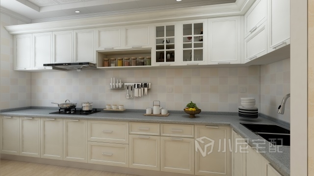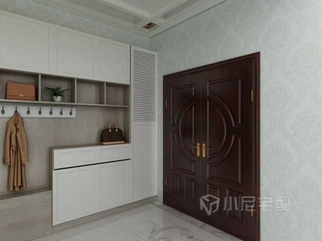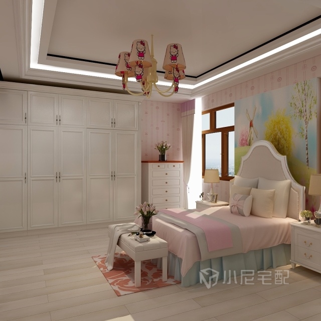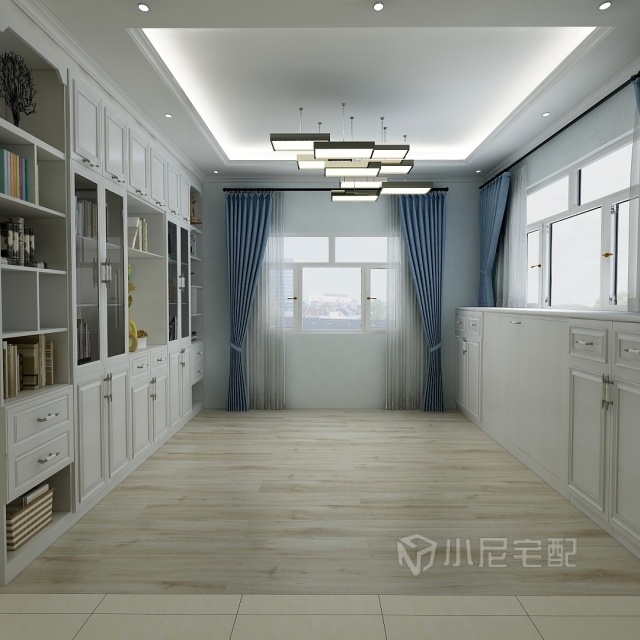 主臥白色衣柜搭配灰色布紋梳妝臺(tái)
